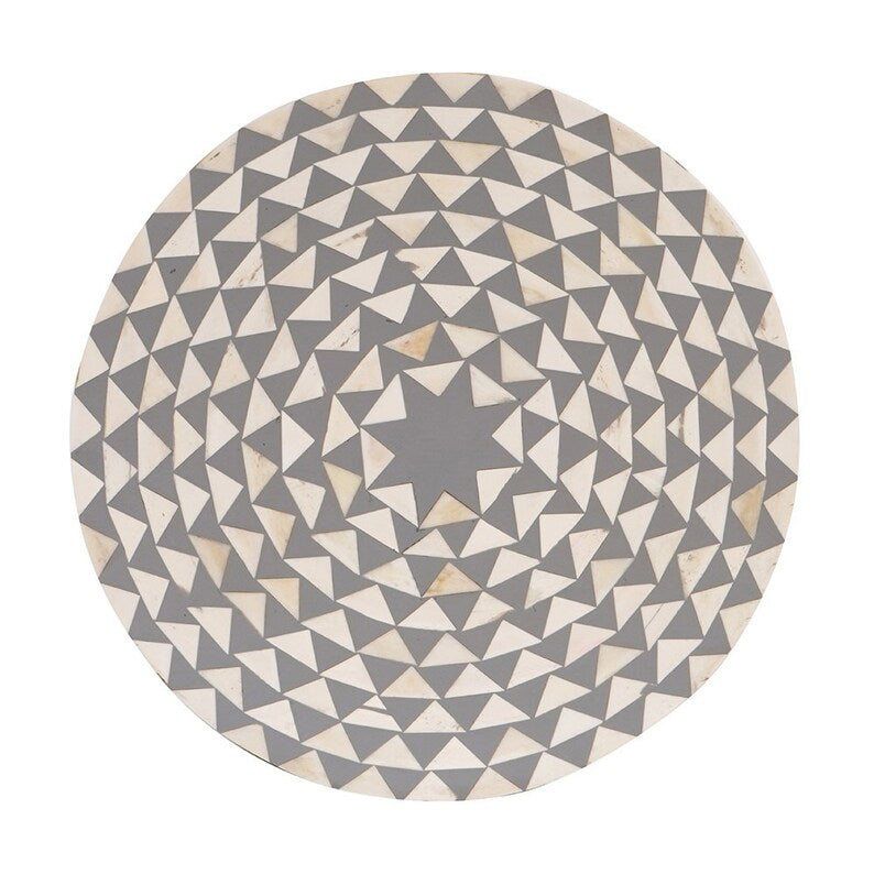 Harmony Monochrome Coffee Table — a modern masterpiece of bone inlay and MDF. This black and white marvel features a striking geometric pattern, adding a touch of contemporary flair to your living space. Meticulously crafted, the seamless fusion of materials creates a unique and stylish centerpiece.