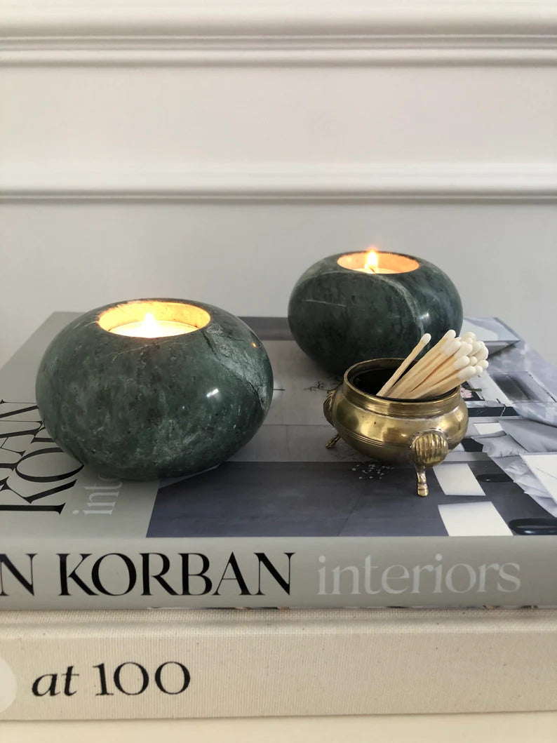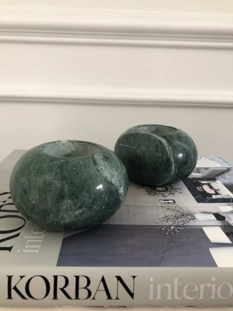 With deep green hues and fine veining, this verdant marble candle stand brings a touch of nature-inspired beauty to your decor.