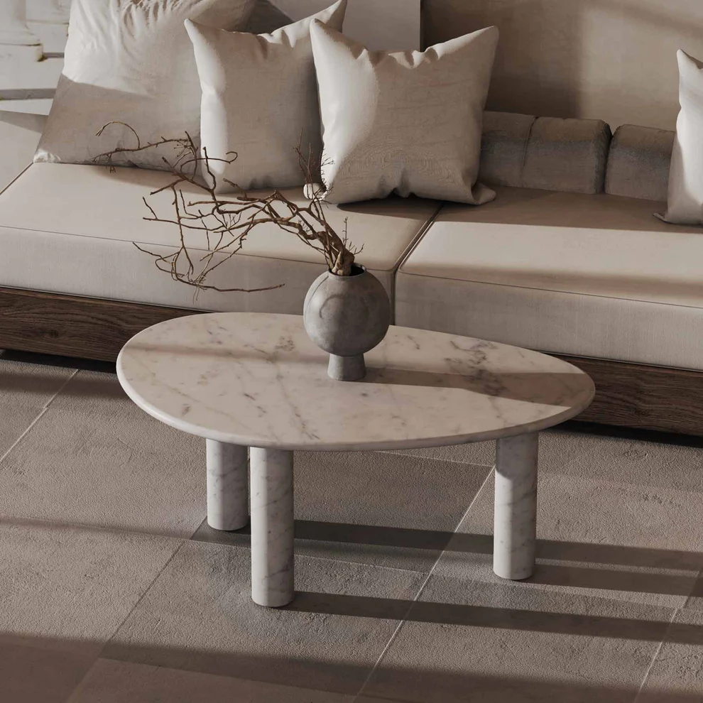 A masterpiece crafted from exquisite marble. The oval design and three-legged support create a perfect blend of classic charm and modern aesthetics, making it an ideal centrepiece for your refined home decor.